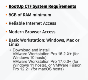 A very simple task but something we usually overlook when getting started. I was so excited to earn the scholarship and start the event that I skimmed over the basic instructions thinking I could dive right in—boy was I wrong. Turns out, there are basic computer requirements that are necessary to have in place to be able to complete certain tasks. For this particular challenge, we needed system requirements such as a RAM minimum, Internet, browser, and a basic workstation. Here is a snapshot: